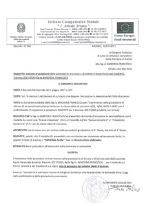 DECRETO DI ESCLUSIONE DOCENTE TRIENNIO SIG.RA BANDIERA FRANCESCA